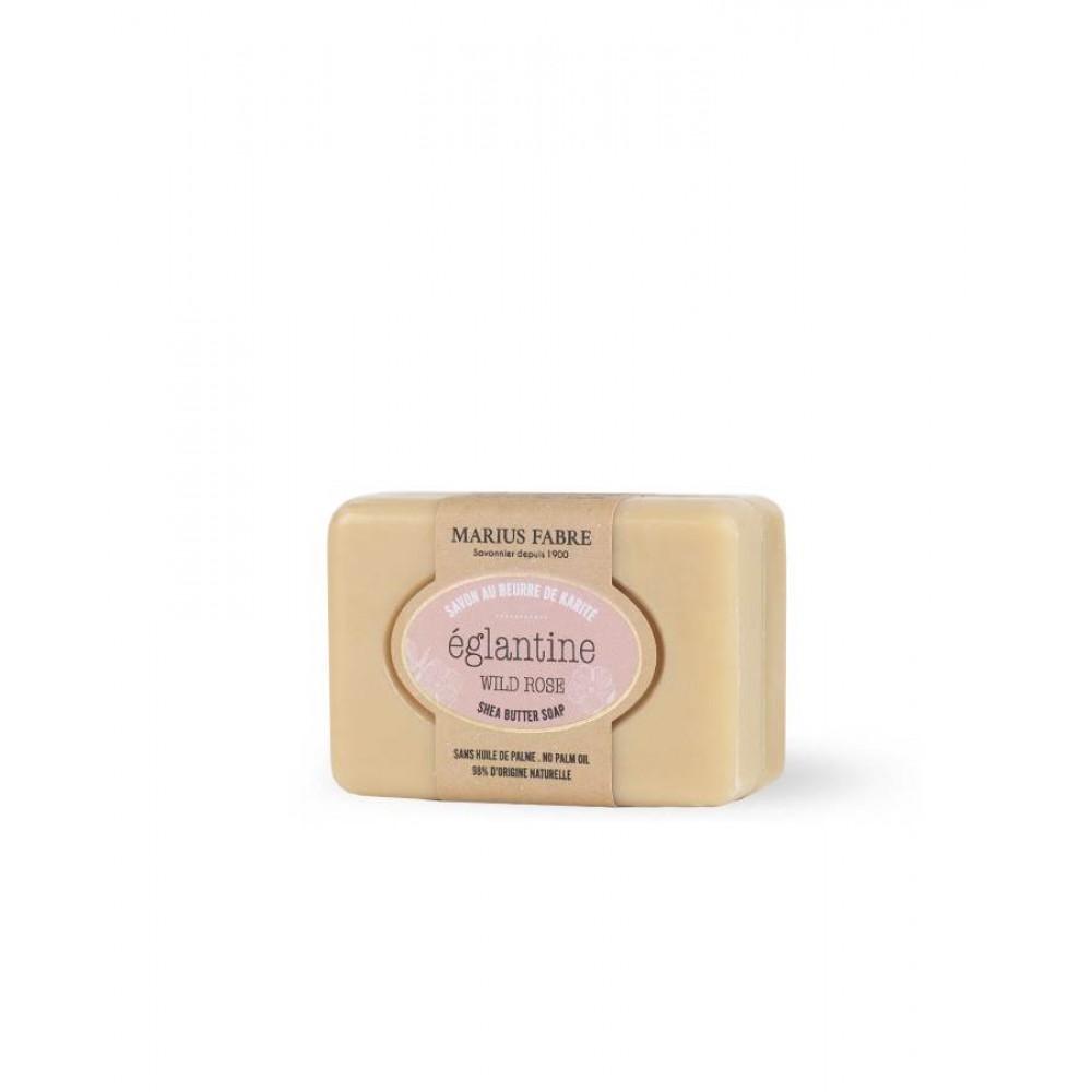 Karite (Šea) sviesta ziepes ar mežrozītes maigo aromātu gatavotas uz augu eļļas bāzes pēc Marius Fabre tradicionālajām ziepju vārīšanas metodēm. Ziepes bagātinātas ar dziedniecisko Karite (Šea) sviestu, kas stimulē kologēna sintēzi, atjauno ādas tonusu, uzlabo tās krāsu un tekstūru, kā arī mitrina, dziedē un baro to. Vitamīns E – viens no svarīgākajiem antioksidantiem un brīvo radikāļu iznīcinātājiem, kas palīdz aizsargāt šūnu plēvi, veicina ādas spēju noturēt ūdeni, kā arī sadzīšanas un atjaunošanās procesus. Ziepes paredzētas ikdienas lietošanai gan sejas ādas, gan roku un ķermeņa kopšanai.